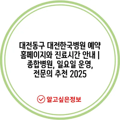 대전동구 대전한국병원 예약 홈페이지와 진료시간 공지 | 종합병원, 일요일 운영, 전연락 추천 2025
