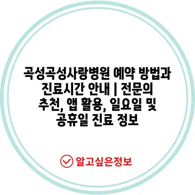 ✅ 곡성사랑병원의 예약 방법과 진료 시간 정보를 쉽게 확인해 보세요.