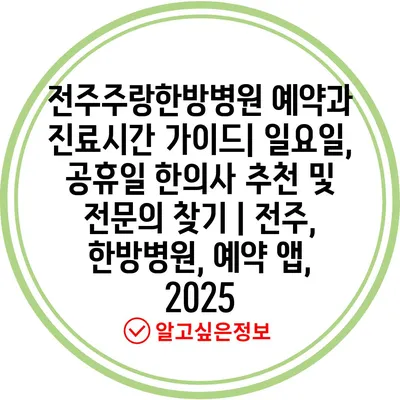 전주주랑한방병원 예약과 진료시간 가이드| 일요일, 공휴일 한의사 추천 및 전문의 찾기 | 전주, 한방병원, 예약 앱, 2025