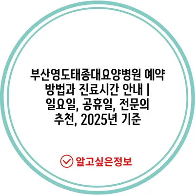 부산영도태종대요양병원 예약 방법과 진료시간 공지 | 일요일, 공휴일, 전연락 추천, 2025년 기준 에 대해 자주 묻는 질문 TOP 5