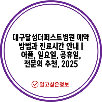 대구달성더퍼스트병원 예약 방법과 진료시간 공지 | 어플, 일요일, 공휴일, 전연락 추천, 2025 에 대해 자주 묻는 질문 TOP 5