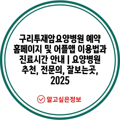 구리투재암요양병원 예약 홈페이지 및 어플앱 이용법과 진료시간 공지 | 요양병원 추천, 전연락, 잘보는곳, 2025 에 대해 자주 묻는 질문 TOP 5
