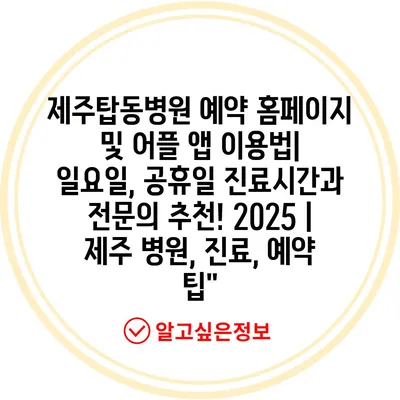 제주탑동병원 예약 홈페이지 및 어플 앱 이용법| 일요일, 공휴일 진료시간과 전문의 추천! 2025 | 제주 병원, 진료, 예약 팁”