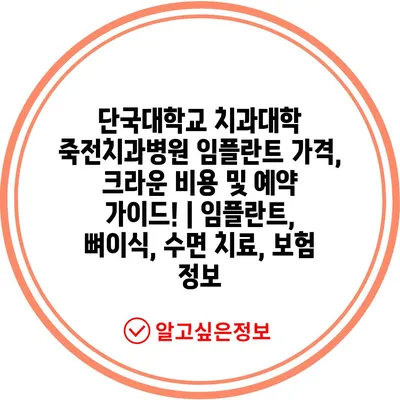 단국대학교 치과대학 죽전치과병원 임플란트 가격, 크라운 비용 및 예약 가이드! | 임플란트, 뼈이식, 수면 치료, 보험 정보