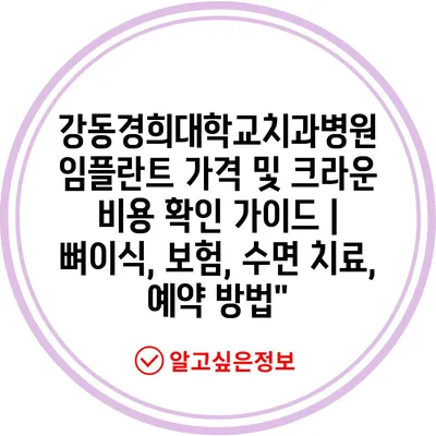 강동경희대학교치과병원 임플란트 가격 및 크라운 비용 확인 가이드 | 뼈이식, 보험, 수면 치료, 예약 방법”
