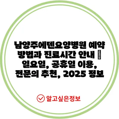 남양주에덴요양병원 예약 방법과 진료시간 안내 | 일요일, 공휴일 이용, 전문의 추천, 2025 정보