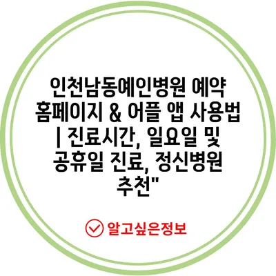 인천남동예인병원 예약 홈페이지 & 어플 앱 사용법 | 진료시간, 일요일 및 공휴일 진료, 정신병원 추천”