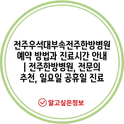 전주우석대부속전주한방병원 예약 방법과 진료시간 안내 | 전주한방병원, 전문의 추천, 일요일 공휴일 진료