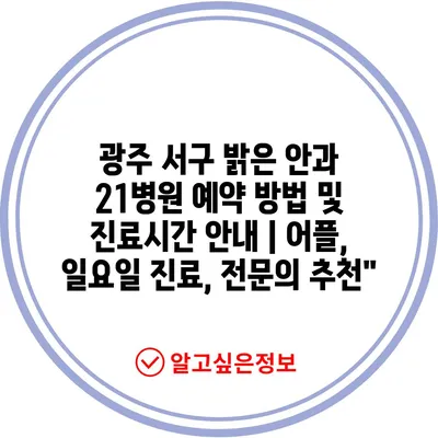 광주 서구 밝은 안과 21병원 예약 방법 및 진료시간 안내 | 어플, 일요일 진료, 전문의 추천”