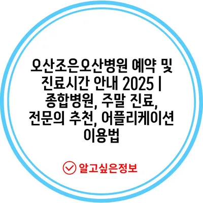 오산조은오산병원 예약 및 진료시간 안내 2025 | 종합병원, 주말 진료, 전문의 추천, 어플리케이션 이용법