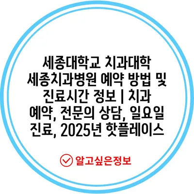 세종대학교 치과대학 세종치과병원 예약 방법 및 진료시간 정보 | 치과 예약, 전문의 상담, 일요일 진료, 2025년 핫플레이스