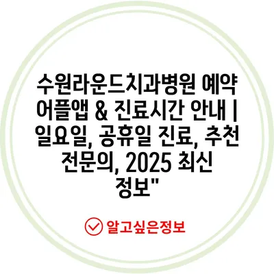 수원라운드치과병원 예약 어플앱 & 진료시간 안내 | 일요일, 공휴일 진료, 추천 전문의, 2025 최신 정보”