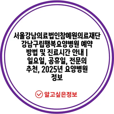 서울강남의료법인참예원의료재단강남구립행복요양병원 예약 방법 및 진료시간 안내 | 일요일, 공휴일, 전문의 추천, 2025년 요양병원 정보