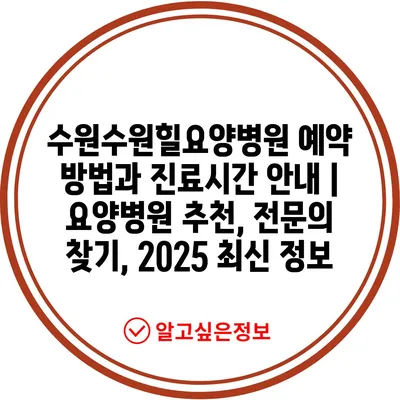 수원수원힐요양병원 예약 방법과 진료시간 안내 | 요양병원 추천, 전문의 찾기, 2025 최신 정보