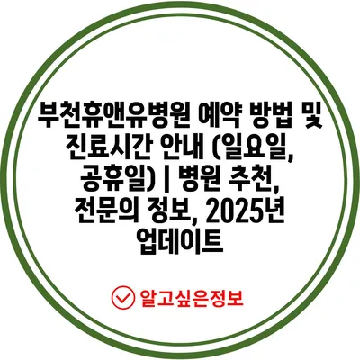 부천휴앤유병원 예약 방법 및 진료시간 안내 (일요일, 공휴일) | 병원 추천, 전문의 정보, 2025년 업데이트