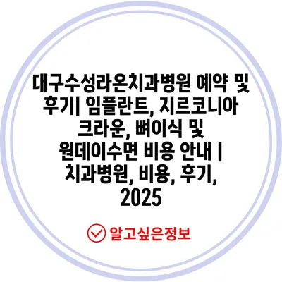 대구수성라온치과병원 예약 및 후기| 임플란트, 지르코니아 크라운, 뼈이식 및 원데이수면 비용 안내 | 치과병원, 비용, 후기, 2025