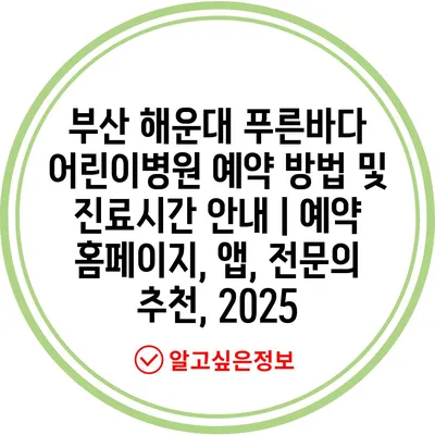 부산 해운대 푸른바다 어린이병원 예약 방법 및 진료시간 안내 | 예약 홈페이지, 앱, 전문의 추천, 2025