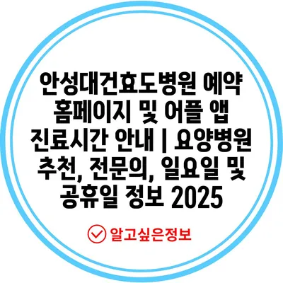 안성대건효도병원 예약 홈페이지 및 어플 앱 진료시간 안내 | 요양병원 추천, 전문의, 일요일 및 공휴일 정보 2025