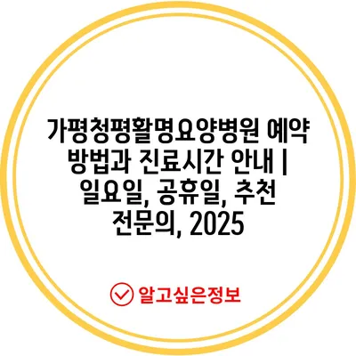 가평청평활명요양병원 예약 방법과 진료시간 안내 | 일요일, 공휴일, 추천 전문의, 2025
