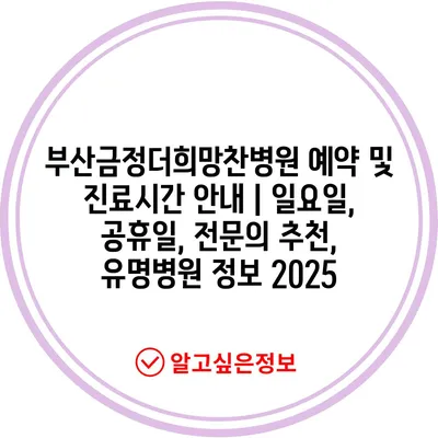 부산금정더희망찬병원 예약 및 진료시간 안내 | 일요일, 공휴일, 전문의 추천, 유명병원 정보 2025