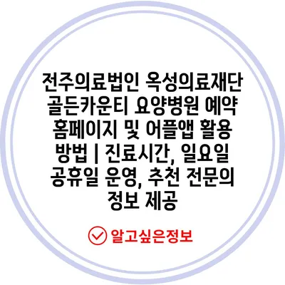 전주의료법인 옥성의료재단 골든카운티 요양병원 예약 홈페이지 및 어플앱 활용 방법 | 진료시간, 일요일 공휴일 운영, 추천 전문의 정보 제공