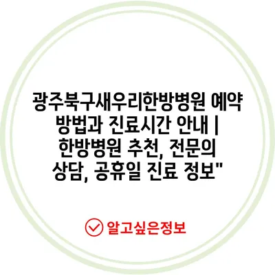 광주북구새우리한방병원 예약 방법과 진료시간 안내 | 한방병원 추천, 전문의 상담, 공휴일 진료 정보”