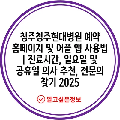 청주청주현대병원 예약 홈페이지 및 어플 앱 사용법 | 진료시간, 일요일 및 공휴일 의사 추천, 전문의 찾기 2025