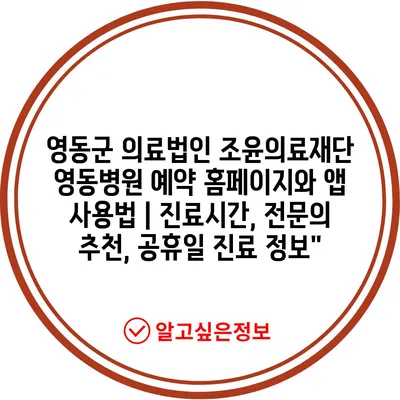 영동군 의료법인 조윤의료재단 영동병원 예약 홈페이지와 앱 사용법 | 진료시간, 전문의 추천, 공휴일 진료 정보”