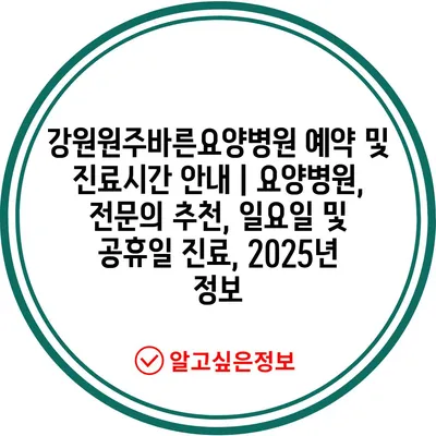 강원원주바른요양병원 예약 및 진료시간 안내 | 요양병원, 전문의 추천, 일요일 및 공휴일 진료, 2025년 정보