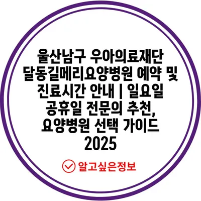울산남구 우아의료재단 달동길메리요양병원 예약 및 진료시간 안내 | 일요일 공휴일 전문의 추천, 요양병원 선택 가이드 2025