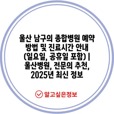 울산 남구의 종합병원 예약 방법 및 진료시간 안내 (일요일, 공휴일 포함) | 울산병원, 전문의 추천, 2025년 최신 정보