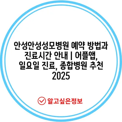 안성안성성모병원 예약 방법과 진료시간 안내 | 어플앱, 일요일 진료, 종합병원 추천 2025