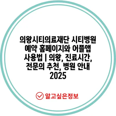 의왕시티의료재단 시티병원 예약 홈페이지와 어플앱 사용법 | 의왕, 진료시간, 전문의 추천, 병원 안내 2025