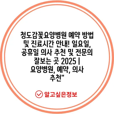 청도감꽃요양병원 예약 방법 및 진료시간 안내! 일요일, 공휴일 의사 추천 및 전문의 잘보는 곳 2025 | 요양병원, 예약, 의사 추천”