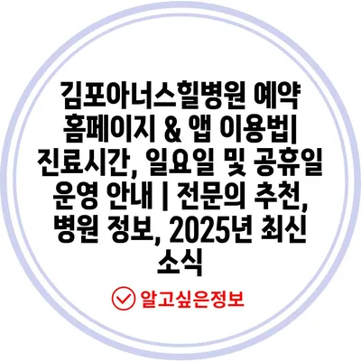 김포아너스힐병원 예약 홈페이지 & 앱 이용법| 진료시간, 일요일 및 공휴일 운영 안내 | 전문의 추천, 병원 정보, 2025년 최신 소식