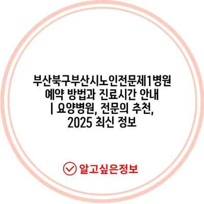 부산북구부산시노인전문제1병원 예약 방법과 진료시간 안내 | 요양병원, 전문의 추천, 2025 최신 정보