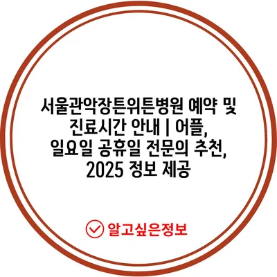서울관악장튼위튼병원 예약 및 진료시간 안내 | 어플, 일요일 공휴일 전문의 추천, 2025 정보 제공