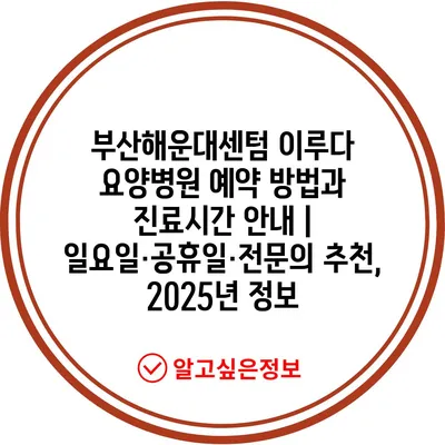 부산해운대센텀 이루다 요양병원 예약 방법과 진료시간 안내 | 일요일·공휴일·전문의 추천, 2025년 정보