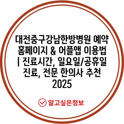 대전중구강남한방병원 예약 홈페이지 & 어플앱 이용법 | 진료시간, 일요일/공휴일 진료, 전문 한의사 추천 2025