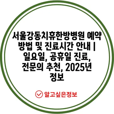 서울강동치휴한방병원 예약 방법 및 진료시간 안내 | 일요일, 공휴일 진료, 전문의 추천, 2025년 정보