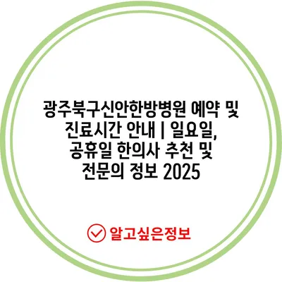 광주북구신안한방병원 예약 및 진료시간 안내 | 일요일, 공휴일 한의사 추천 및 전문의 정보 2025