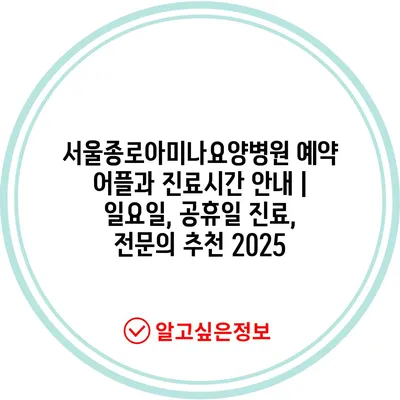 서울종로아미나요양병원 예약 어플과 진료시간 안내 | 일요일, 공휴일 진료, 전문의 추천 2025