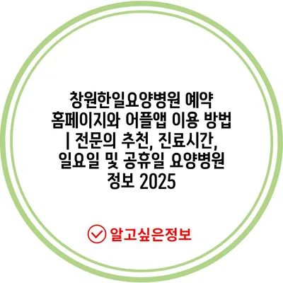 창원한일요양병원 예약 홈페이지와 어플앱 이용 방법 | 전문의 추천, 진료시간, 일요일 및 공휴일 요양병원 정보 2025