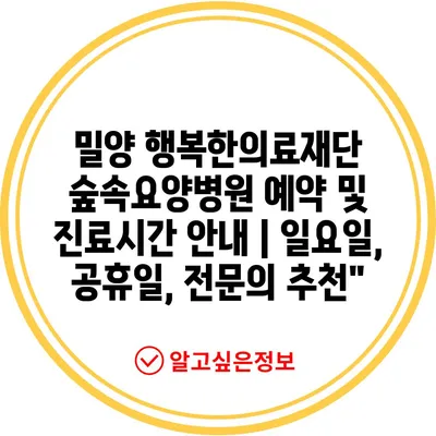 밀양 행복한의료재단 숲속요양병원 예약 및 진료시간 안내 | 일요일, 공휴일, 전문의 추천”