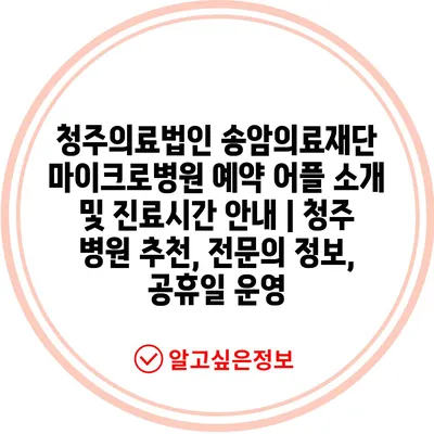 청주의료법인 송암의료재단 마이크로병원 예약 어플 소개 및 진료시간 안내 | 청주 병원 추천, 전문의 정보, 공휴일 운영