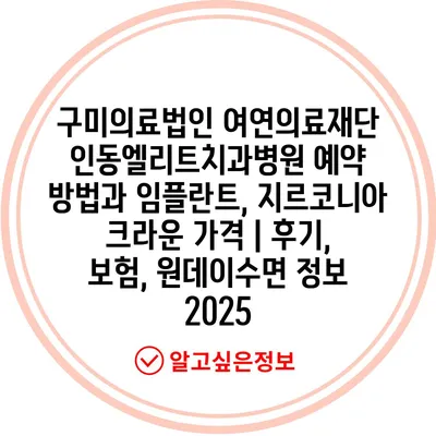 구미의료법인 여연의료재단 인동엘리트치과병원 예약 방법과 임플란트, 지르코니아 크라운 가격 | 후기, 보험, 원데이수면 정보 2025