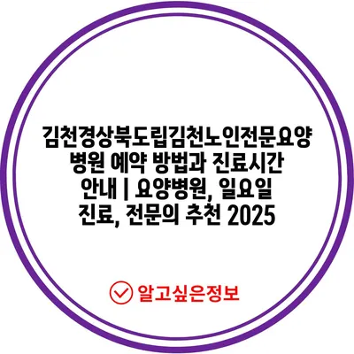김천경상북도립김천노인전문요양병원 예약 방법과 진료시간 안내 | 요양병원, 일요일 진료, 전문의 추천 2025