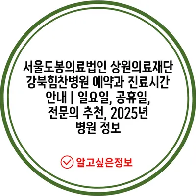 서울도봉의료법인 상원의료재단 강북힘찬병원 예약과 진료시간 안내 | 일요일, 공휴일, 전문의 추천, 2025년 병원 정보