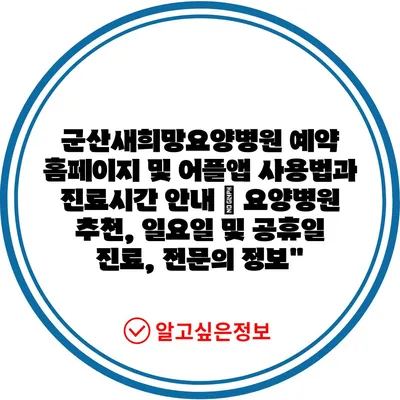 군산새희망요양병원 예약 홈페이지 및 어플앱 사용법과 진료시간 안내 | 요양병원 추천, 일요일 및 공휴일 진료, 전문의 정보”