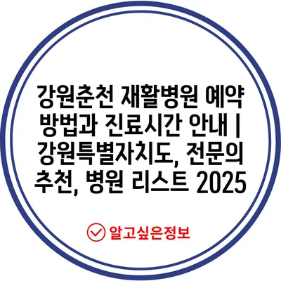 강원춘천 재활병원 예약 방법과 진료시간 안내 | 강원특별자치도, 전문의 추천, 병원 리스트 2025